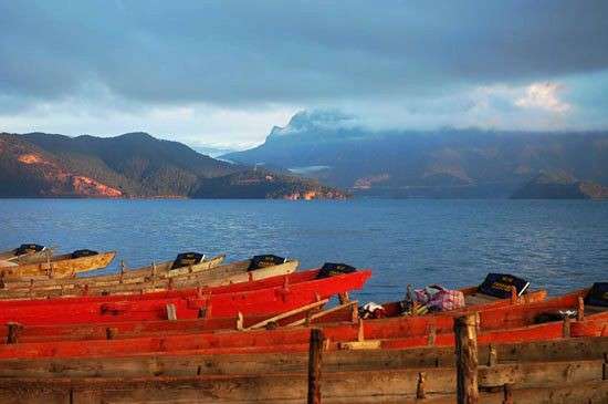 晨曦中领略湖光山色,乘船游湖(乘船至云南落水村80元/人,自理,游览时间4.5小时。乘船游览草海30元/人,游览时间1小时) ,领略湖中
